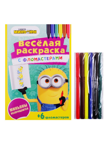 Что может быть лучше Миньонов? Конечно же, много Миньонов! Скорее открывай раскраску, бери фломастеры и отправляйся в увлекательное путешествие с командой весёлых, добрых и озорных Миньонов! Тебя ждёт радость, веселье, а также незабываемые приключения! В наборе раскраска и 6 разноцветных фломастеров.ID Продукта